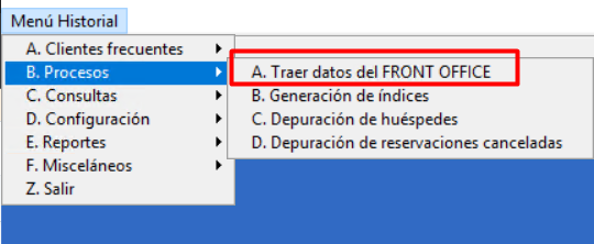2.- Daremos clic en Menú Historial--> Procesos --> Traer datos del FRONT OFFICE.