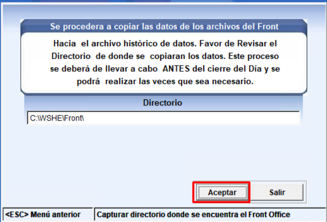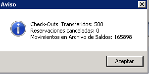 Como bien se menciona en la pantalla, este proceso se tiene que realizar antes del cierre del día y se podrá realizar las veces que sean necesarias.4.- Por último, nos aparecerá un mensaje donde nos muestra la información que se trajo del sistema Front Office.