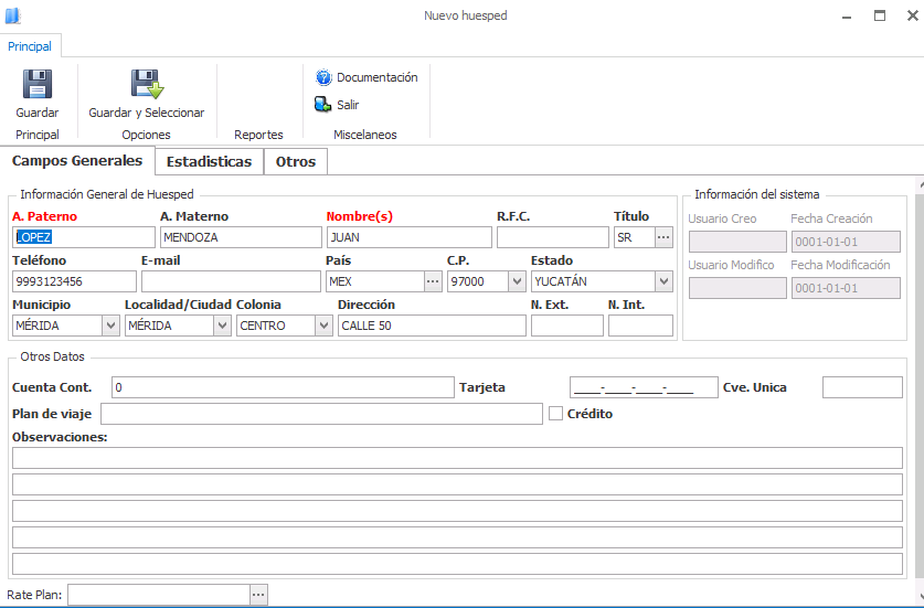 Nota: Los datos capturados al agregar un cliente frecuente pueden ser editados cada que se hospede el cliente en el hotel.