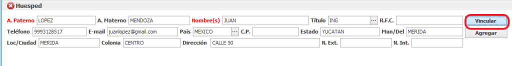 Para dar de alta a un cliente como frecuente, una vez que capturemos todos los datos, presionaremos en el botón Vincular